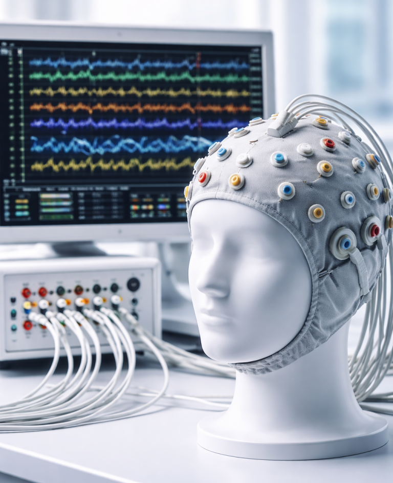 Die Elektroenzephalographie (EEG) ist ein schmerzloses, etabliertes diagnostisches Verfahren zur Aufzeichnung der elektrischen Aktivität des Gehirns mittels Elektroden auf der Kopfhaut. Sie dient primär der Diagnose von Epilepsie, Schlafstörungen, Hirnentzündungen und Tumoren. Die Untersuchung dauert ca. 20–30 Minuten und ist ein sicheres Routineverfahren.